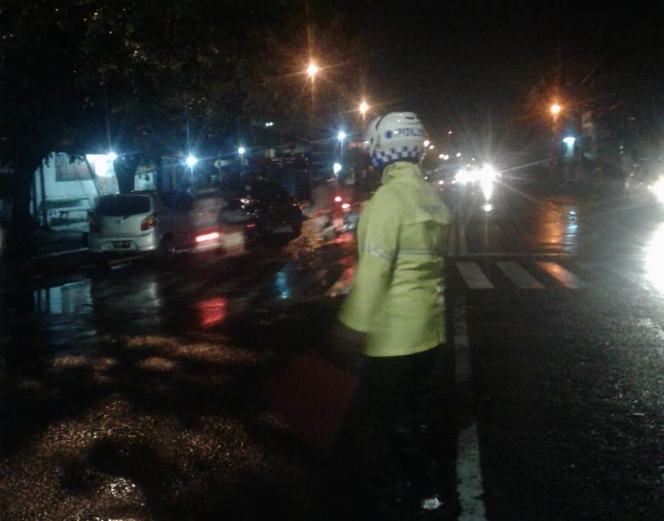 Seputarperak.com- Pengaturan lalu lintas dilakukan Satlantas Polres Pelabuhan Tanjung Perak Sabtu malam, 16 Maret 2019 di Jalan Kalimas.