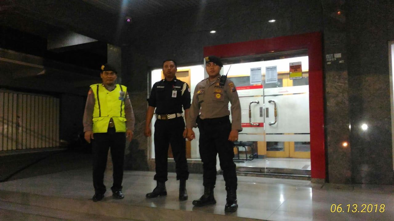 Seperti yang dilakukan dua personil Polsek Pabean Cantikan, Kamis dini hari, 14 Juni 2018, yang mengunjungi kantor Bank Jatim cabang Perak Utara.