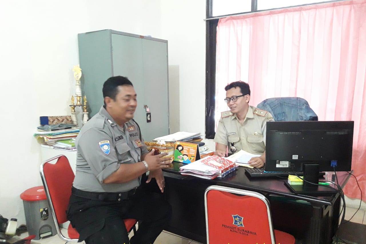 Seputarperak.com- Koordinasi kamtibmas dilakukan Bripka Victor Sumbodo, Babinkamtibmas Ujung, Polsek Semampir, Polres Pelabuhan Tanjung Perak bersama kepala Kelurahan Ujung, Bapak Wahyudi, Selasa pagi, 19 Maret 2019.