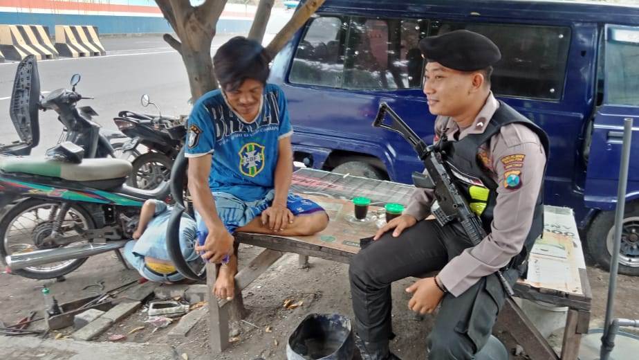 Dalam kegiatan patroli ini personil Satsabhara menyampaikan himbauan kamtibmas kepada setiap orang yang ditemui. Diantaranya termasuk tukang tambal ban.