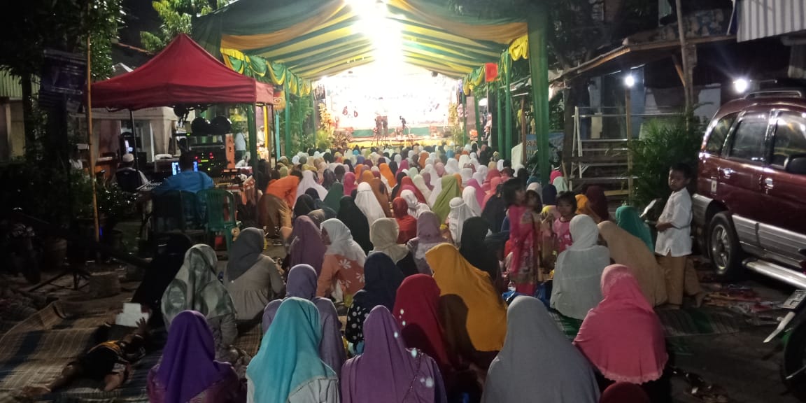 Seputarperak.com- Pengajian memperingati Isra Mi’raj digelar di depan Mushola As Salam, Jalan Lasem, Jumat malam, 29 Maret 2019, dihadiri ratusan jamaah.