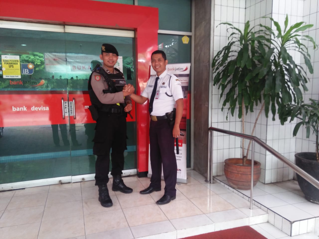 Salah satunya seperti yang dilakukan personil Satsabhara Polres Pelabuhan Tanjung Perak di kantor Bank Jatim cabang Tanjung Perak, Kamis pagi, 4 April 2019.