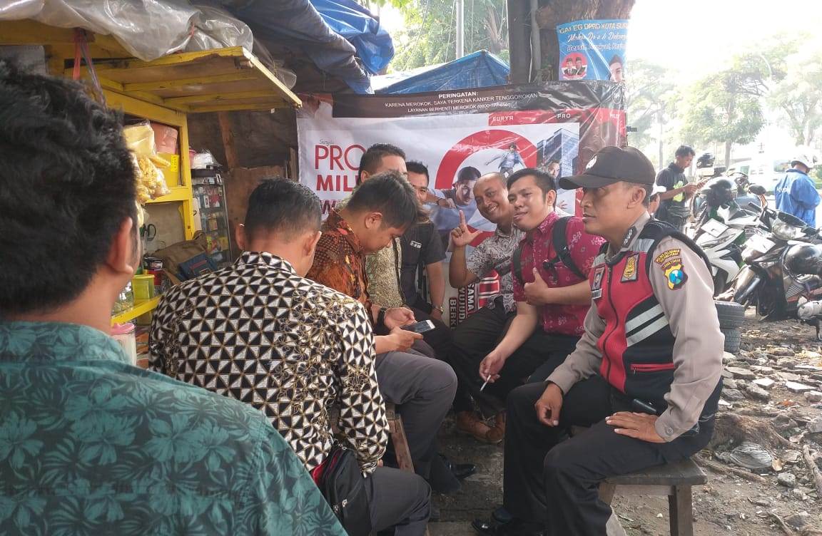 Seputarperak.com- Ajakan untuk ikut menyukseskan Pemilu disampaikan Aiptu Made Suarthana, Babinkamtibmas Bongkaran, Polsek Pabean Cantikan, Polres Pelabuhan Tanjung Perak kepada para pengunjung warung di Jalan Stasiun Kota, Jumat pagi, 5 April 2019.