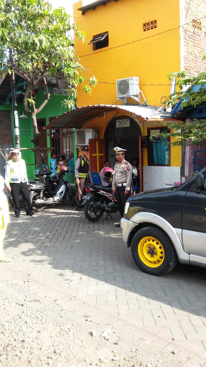 Seputarperak.com- Sama halnya yang dilakukan Polsek-Polsek lain di jajaran Polres Pelabuhan Tanjung Perak. Pengamanan kebaktian di gereja juga dilakukan oleh Polsek Asemrowo di wilayahnya.