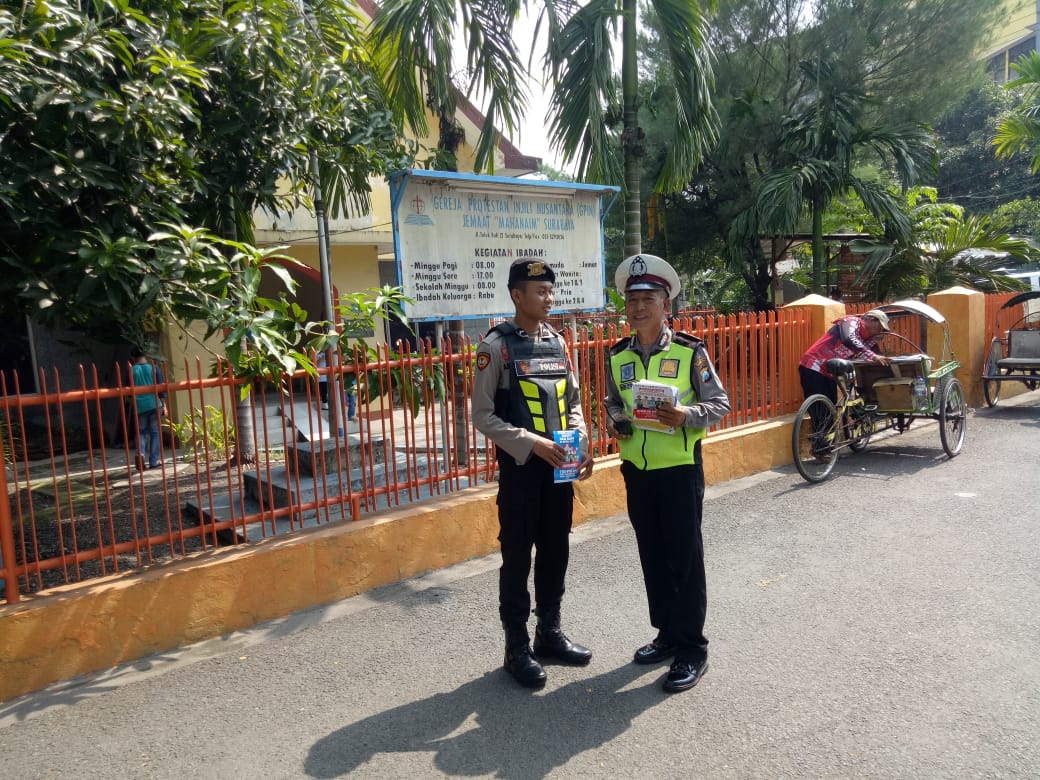 Seputarperak.com- Patroli kewilayahan dilakukan personil Satsabhara Polres Pelabuhan Tanjung Perak bersama anggota Unit Lantas Polsek Pabean Cantikan, Polres Pelabuhan Tanjung Perak di Gereja Mahanaim, Jalan Teluk Buli, Minggu pagi, 7 April 2019.