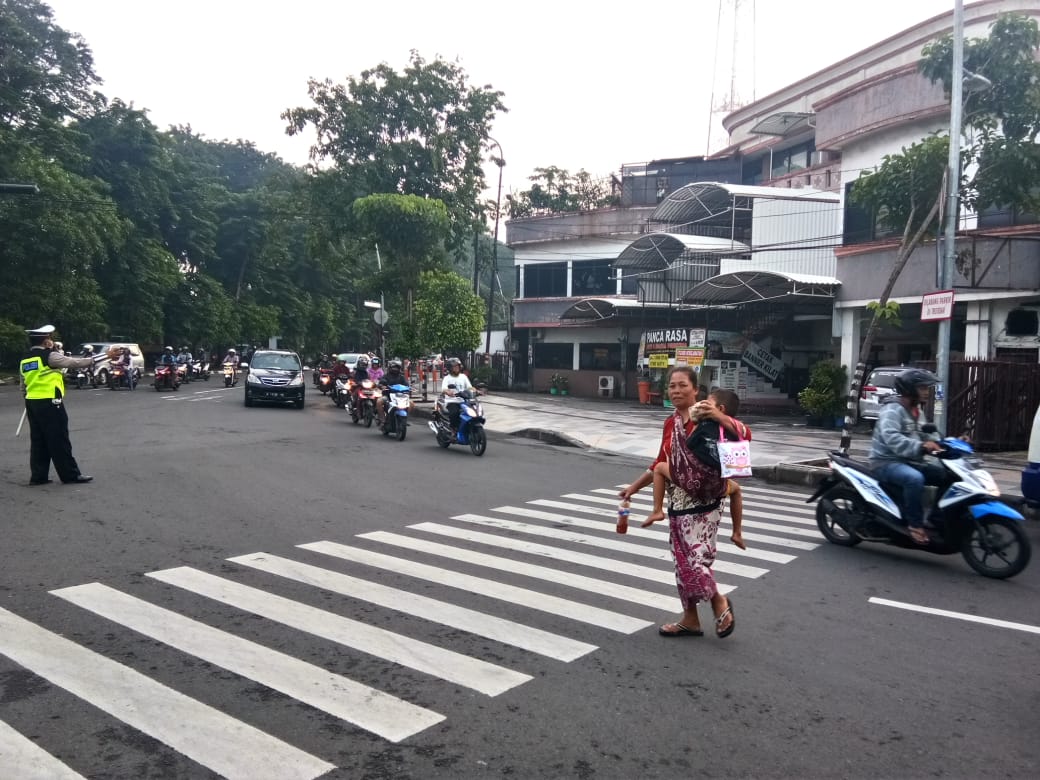 Salah satunya seperti yang dilakukan personil Satlantas Polres Pelabuhan Tanjung Perak di kawasan Palmboom, Jalan Prak Barat, Rabu, 10 April 2019.