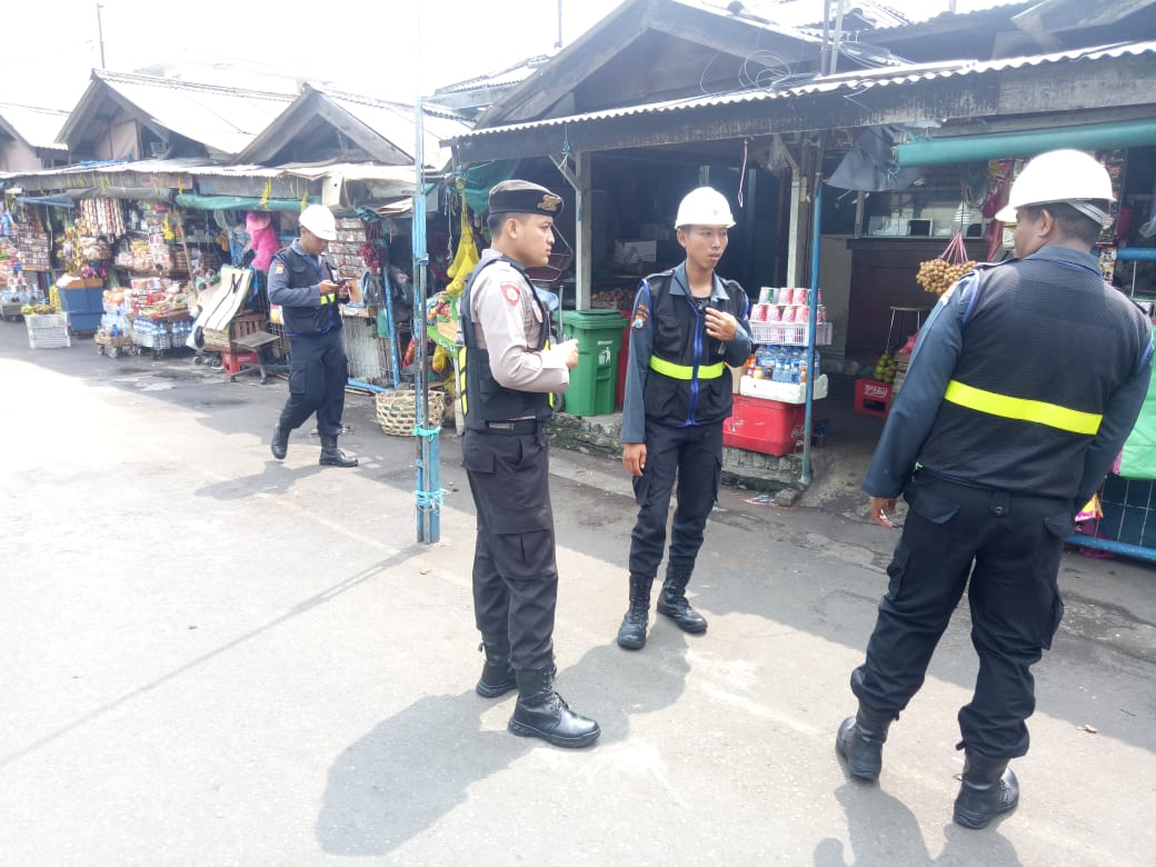 Seputarperak.com- Patroli dilakukan personil Satsabhara Polres Pelabuhan Tanjung Perak bersama anggota sekuriti Pelindo III di Pasar Ujung, Rabu pagi, 10 April 2019.