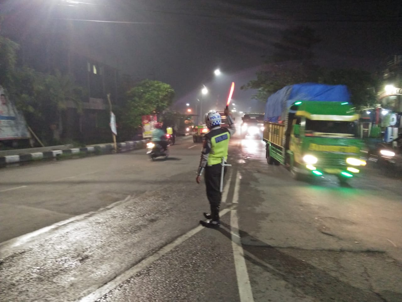 Salah satunya seperti yang dilakukan personil Satlantas di seputaran Jalan Jakarta, tepatnya di depan Pos Polantas, Rabu malam, 10 April 2019.