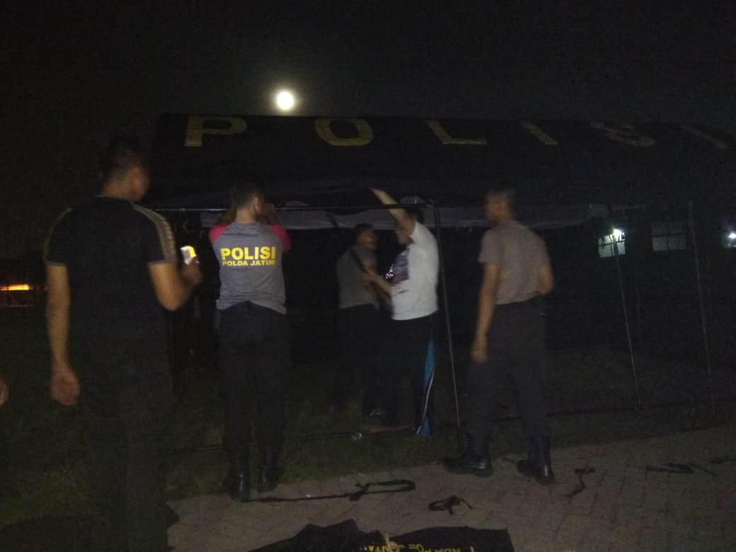 Guna mendukung kegiatan pengamanan ini, pendirian tenda telah dilakukan Polres Pelabuhan Tanjung Perak di beberapa tempat, Rabu malam, 17 April 2019.