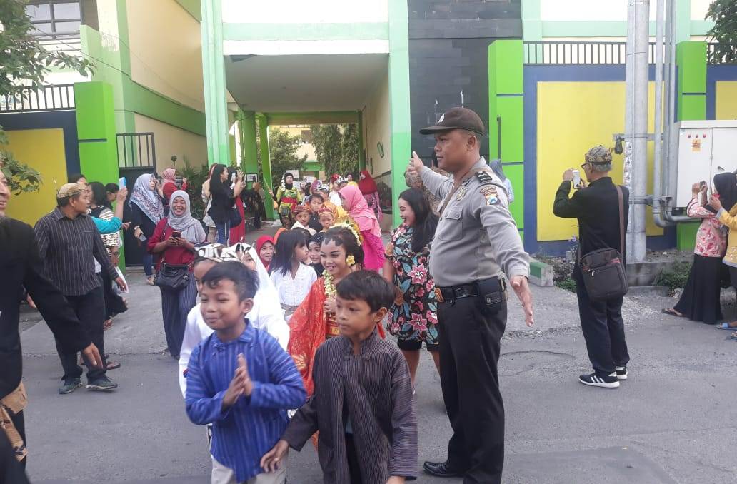 Seputarperak.com- Pengawalan karnaval memperingati Hari Kartini dilakukan Aipda Yanuri, Babinkamtibmas Perak Barat, Polsek Krembangan, Polres Pelabuhan Tanjung Perak di SDN Perak Barat, Jalan Tanjung Tarowitan, Sabtu, 20 April 2019.