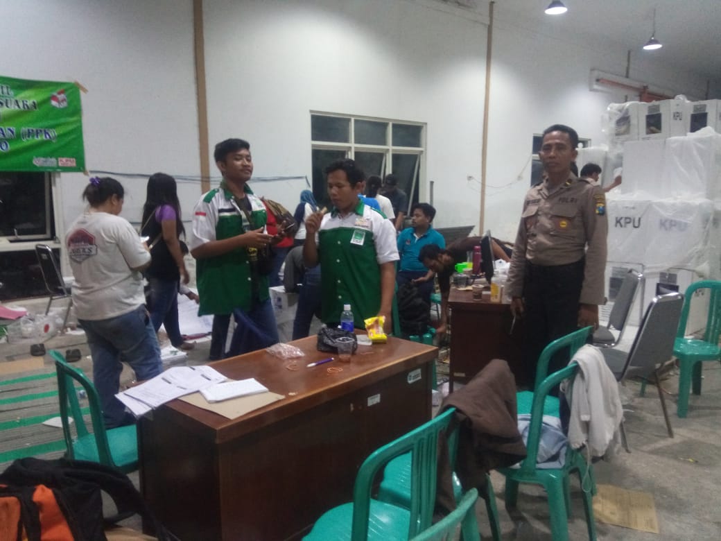 Seputarperak.com- Pengamanan rekapitulasi surat suara dilakukan Polsek Asemrowo, Polres Pelabuhan Tanjung Perak di PPK Asemrowo, Selasa malam, 23 April 2019.