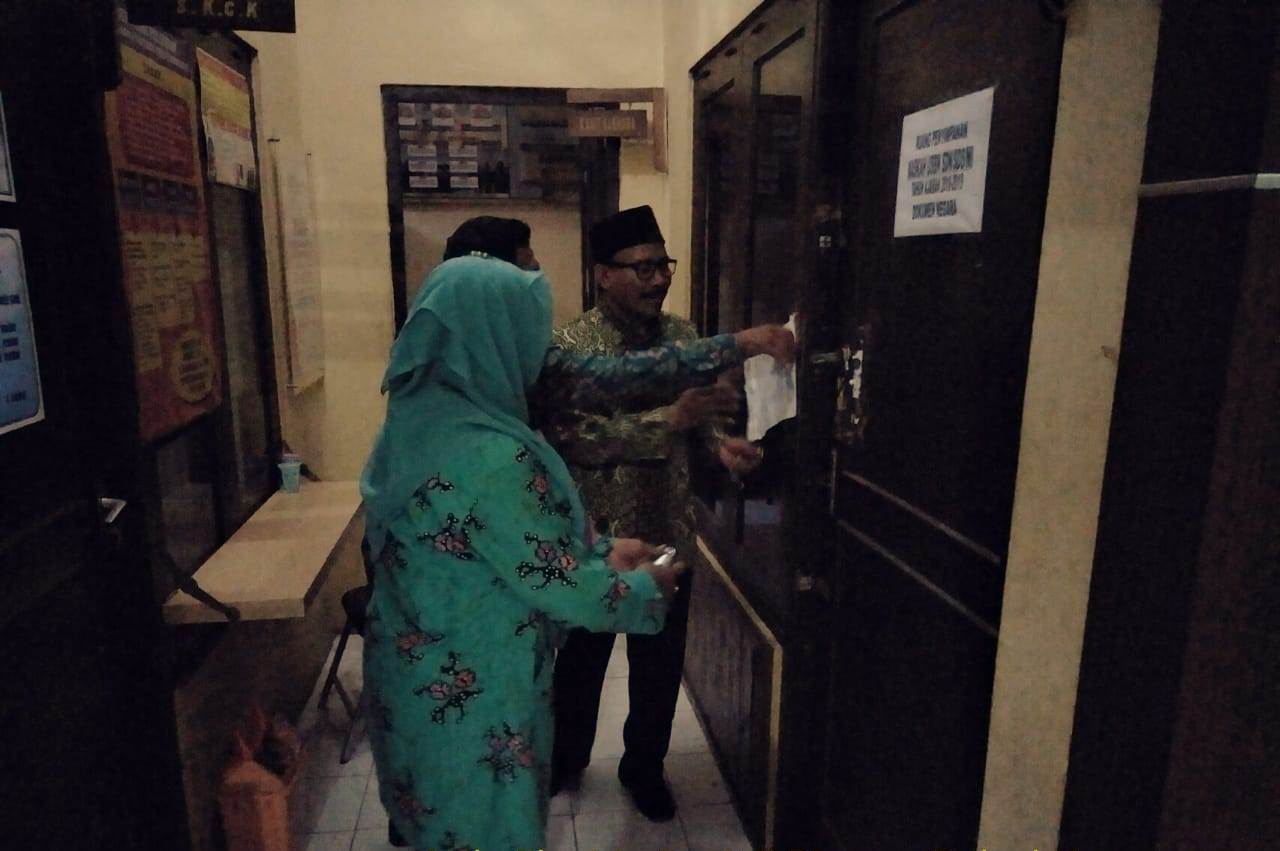 Seputarperak.com- Personil Polsek Asemrowo, Polres Pelabuhan Tanjung Perak mendampingi Ketua K3S Bapak Mustofa dan ketua Sub Rayon 27 Ibu Sri, untuk membuka segel ruang penyimpanan naskah Unas di Polsek Asemrowo, Rabu, 24 April 2019.