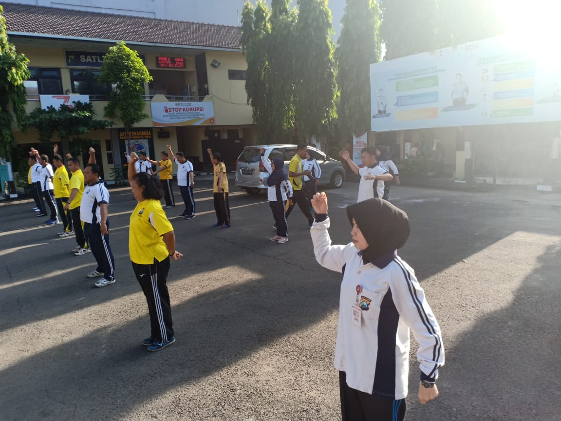 Saat itu acara dipimpin Kasium Ipda Supriono, yang diawali dengan pemanasan dan peregangan.