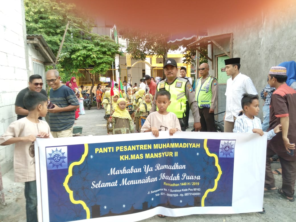 Seputarperak.com- Pengamanan dilakukan Polsek Pabean Cantikan, Polres Pelabuhan Tanjung Perak di acara karnaval Panti Pesantren Muhammadiyah KH Mas Mansyur II, Sabtu sore, 4 Mei 2019.