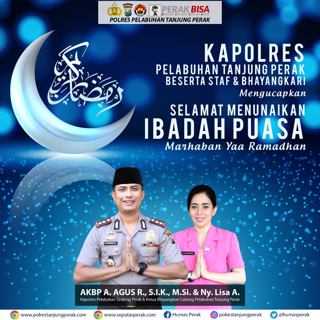 “Saya bersama staf dan Bhayangkari mengucapkan selamat menunaikan ibadah puasa keapda masyarakat muslim di wilayah hukum Polres Pelabuhan Tanjung Perak ini. Semoga ibadahnya lancar sampai akhir,” ujarnya.
