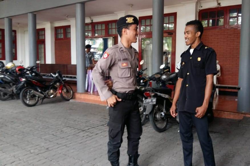 Personil Satsabhara menghimbau petugas sekuriti untuk selalu waspada dengan orang-orang yang tidak dikenal dan tidak segan menyakan maksud orang tersebut.