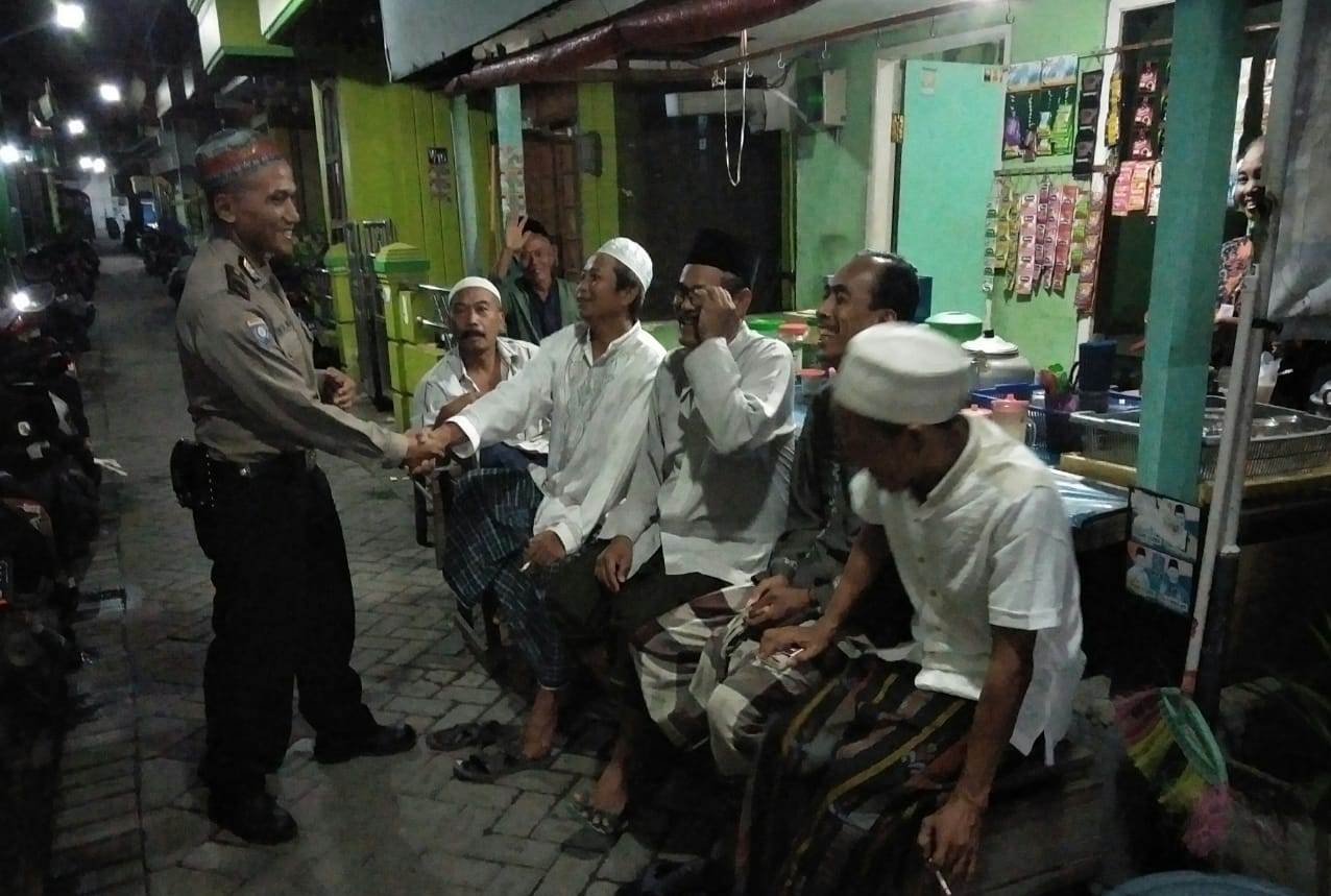 Seputarperak.com- Pesan jaga kerukunan disampaikan Ipda Eko Mustaghfirin, Panit Binmas Polsek Asemrowo, Polres Pelabuhan Tanjung Perak saat mengunjungi warga RW 06 Tambak Langon, Kelurahan Tambaksarioso, Selasa malam, 14 Mei 2019.