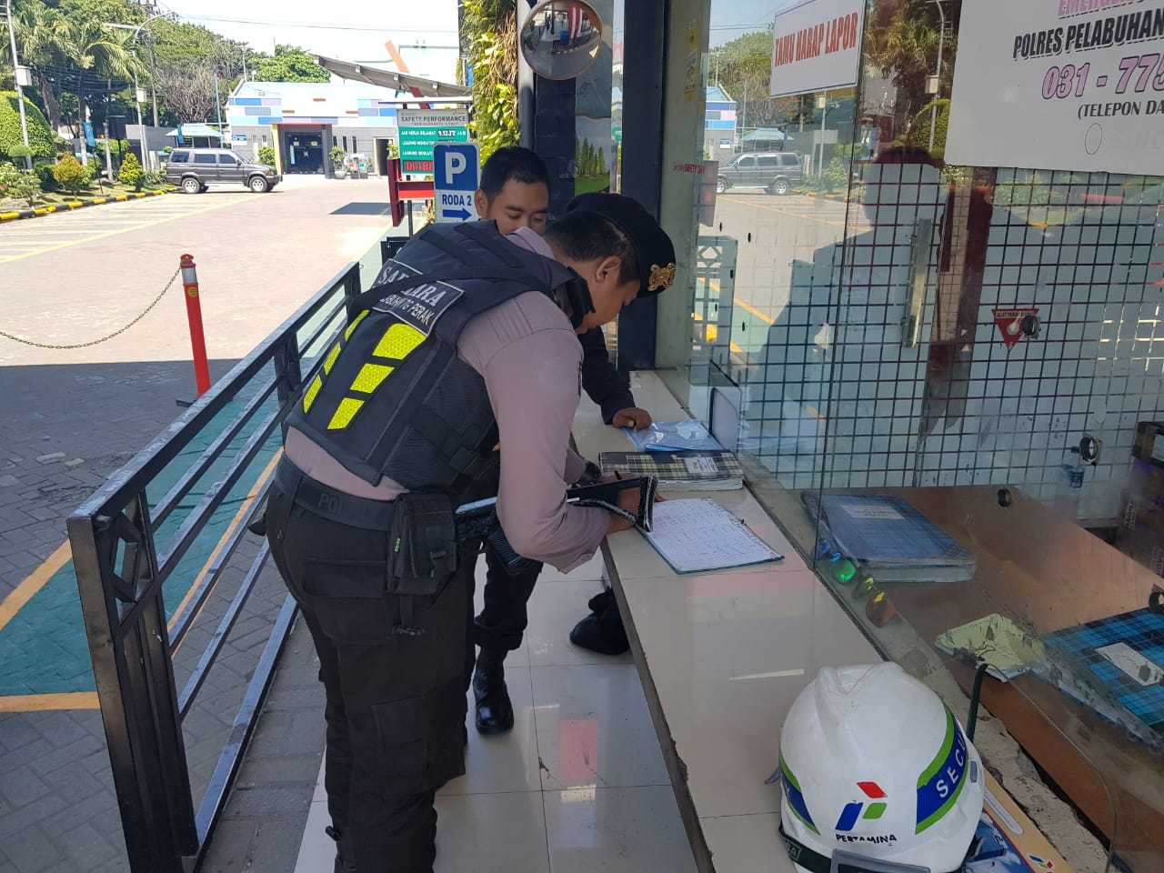 Selain memantau situasi keamanan di sekeliling depo, personil Satsabhara juga menyampaikan himbauan kamtibmas ke para petugas sekuriti.