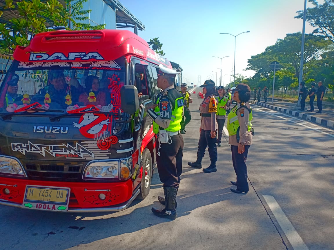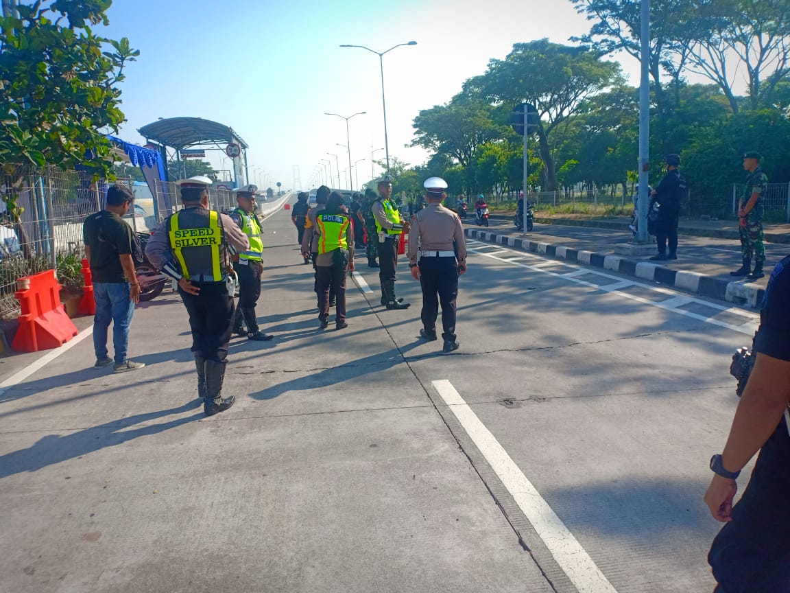 Seputarperak.com- Penyekatan massa dan razia terus dilakukan Polres Pelabuhan Tanjung Perak bersama Polsek jajaran dan TNI di Tol Gate Jembatan Suramadu untuk mengantisipasi pengerahan massa dari Madura menuju Kota Jakarta.