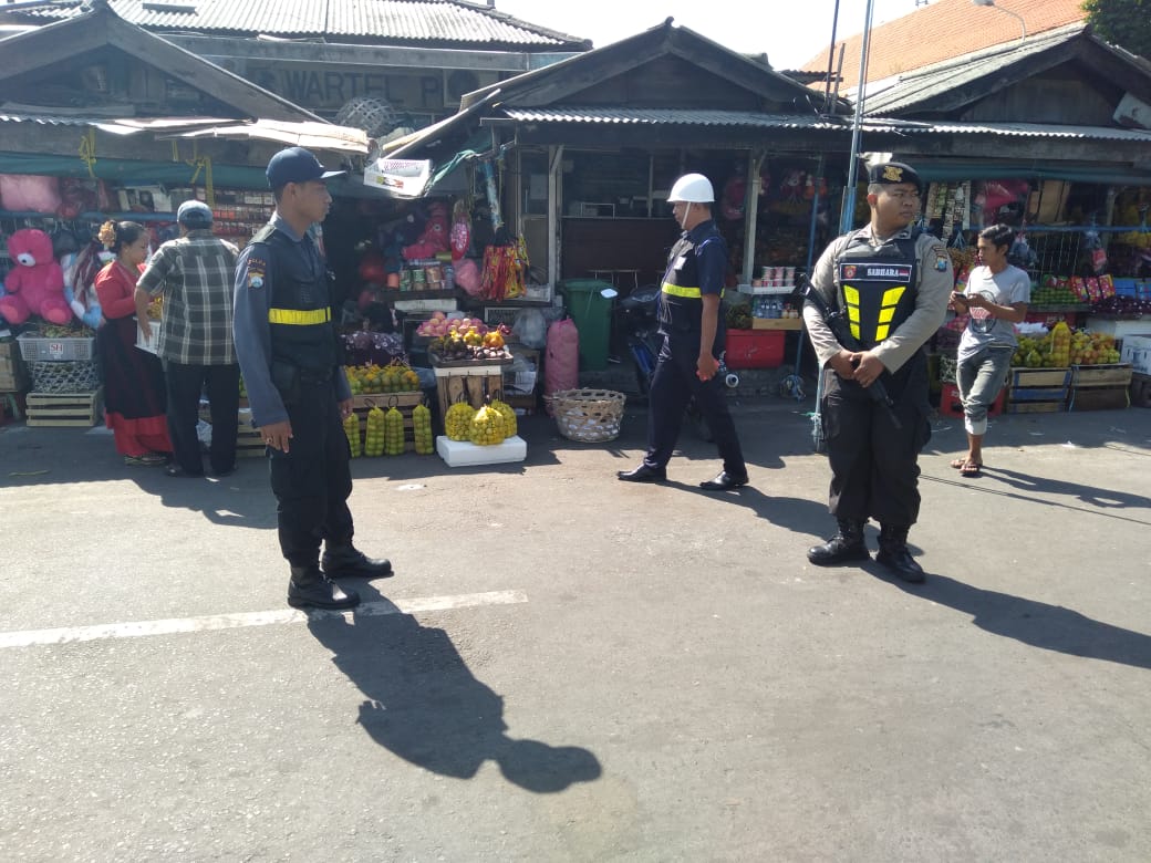 Seputarperak.com- Patroli dilakukan personil Satsabhara Polres Pelabuhan Tanjung Perak bersama sekuriti Pelindo di Pasar Ujung, Selasa siang, 21 Mei 2019.