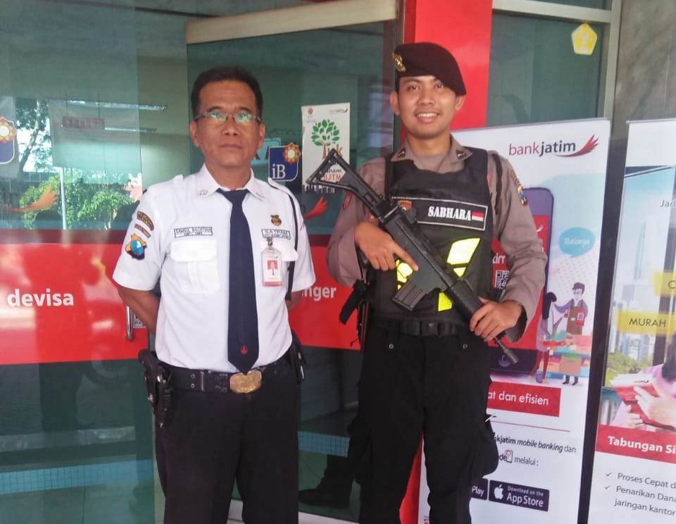 Saat itu selain berjaga, personil Satsabhara juga melakukan pengawalan terhadap nasabah yang baru saja mengambil uang dalam jumlah besar. Mereka dikawal, minimal hingga masuk ke mobil dan meninggalkan pelataran kantor Bank Jatim.