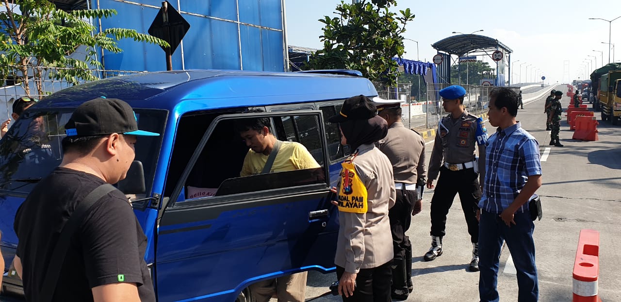Seputarperak.com- Penyekatan dan razia masih terus dilakukan Polres Pelabuhan Tanjung Perak dan Polsek-Polsek jajaran bersama TNI di pintu tol Suramadu, Kamis, 23 Mei 2019.