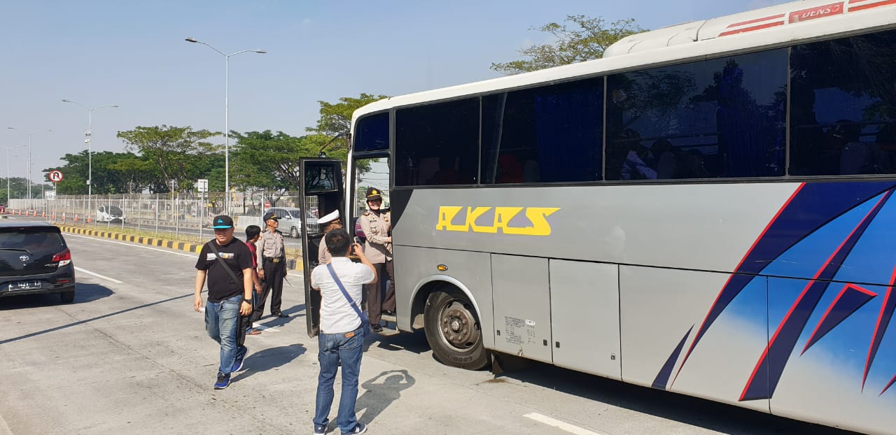 Saat itu semua kendaraan jenis bus dan elf yang keluar dari pintu tol sisi Surabaya dihentikan dan dilakukan pemeriksaan.