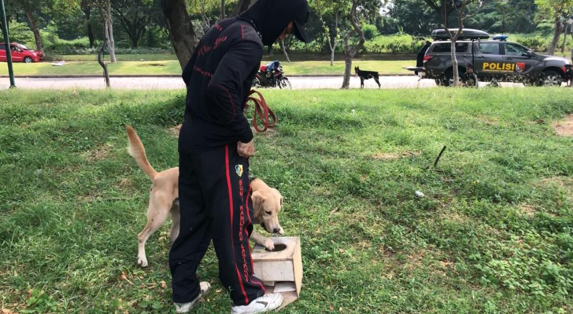 Salah satunya seperti yang dilakukan personil Unit K-9, di lapangan Petekan, Selasa siang, 28 Mei 2019.