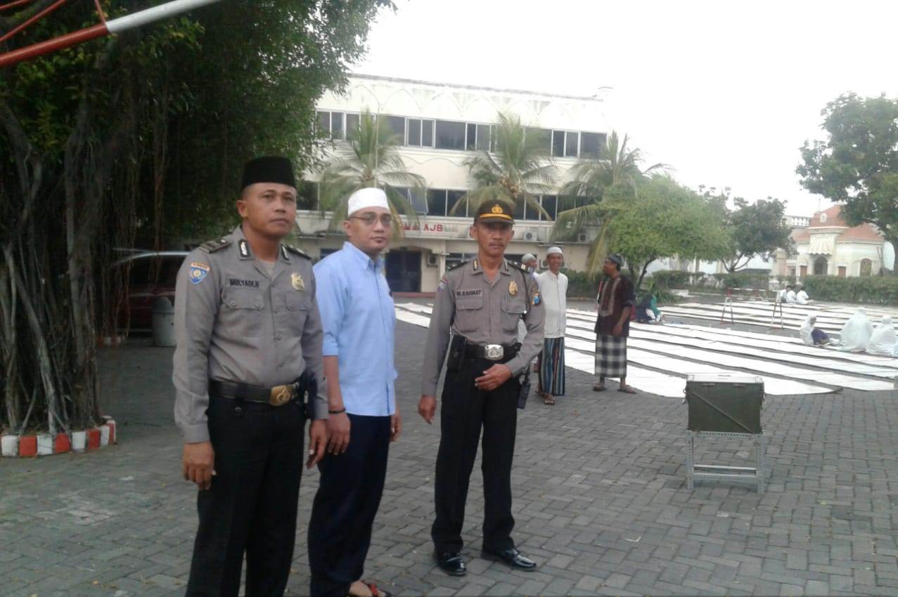 Seputarperak.com- Polsek Krembangan, Polres Pelabuhan Tanjung Perak melakukan pengamanan ibadah Sholat Idul Fitri (Sholat Ied) di Masjid Al Mutaqin depan Hotel Antariksa di Jalan Gresik, Rabu pagi, 5 Juni 2019.