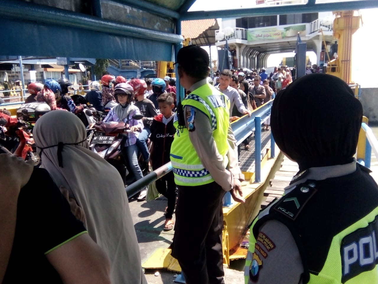 Seputarperak.com- Pengamanan arus mudik Lebaran di Pelabuhan Ujung dilakukan sejumlah personil Polres Pelabuhan Tanjung Perak, Kamis siang, 6 Juni 2019.