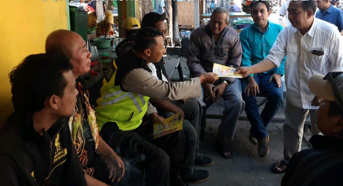 Seputarperak.com- Sosialisasi SPKT door to door disampaikan Ipda Tri Asmoro, Panit Binmas Polsek Pabean Cantikan, Polres Pelabuhan Tanjung Perak di acara cangkrukan yang digelar di Jalan KH Mas Mansyur bersama warga setempat.