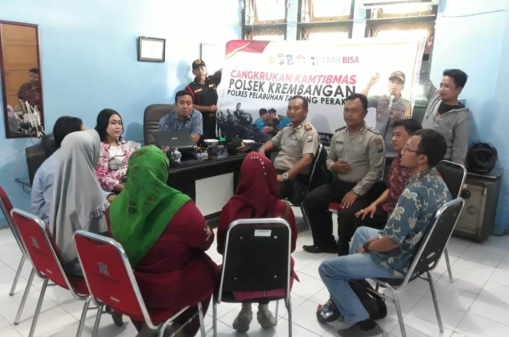 Sosialisasi SPKT door to door ini dilaksanakan dalam kegiatan cangkrukan yang dipimpin Wakapolsek AKP Prayitno SH didampingi Aipda Yanuri, Babinkamtibmas Perak Barat.