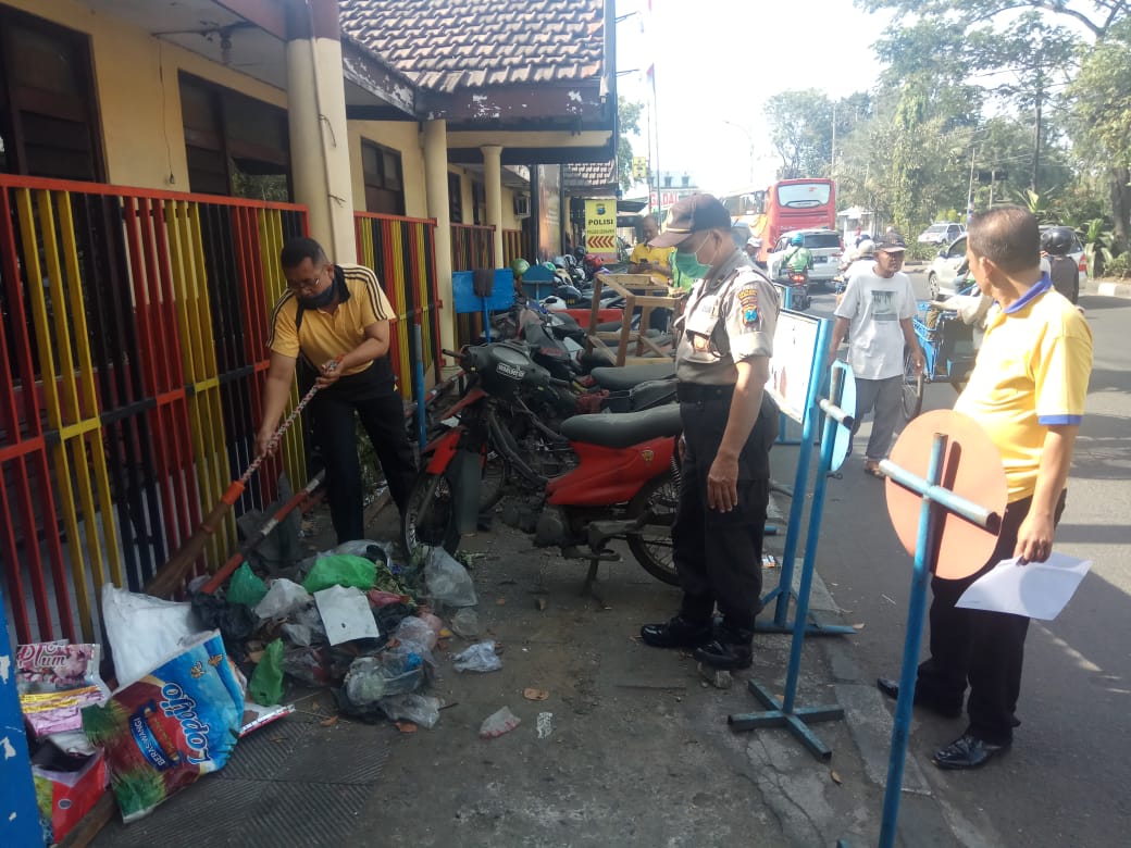 Termasuk menyapu halaman, membersihkan saluran air sampai memunguti sampah-sampah berserangan di depan Mapolsek.