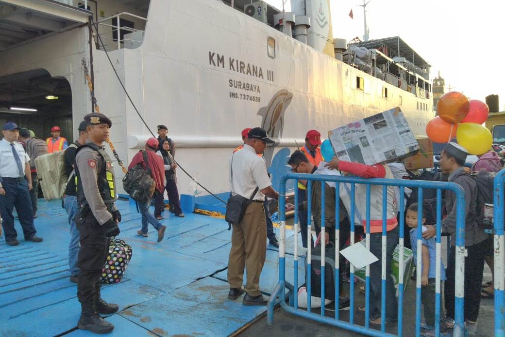 Seputarperak.com- Pengamanan penumpang kapal dilakukan personil Satsabhara Polres Pelabuhan Tanjung Perak, Jumat pagi, 21 Juni 2019 di Pelabuhan Gapura Surya Nusantara (GSN).