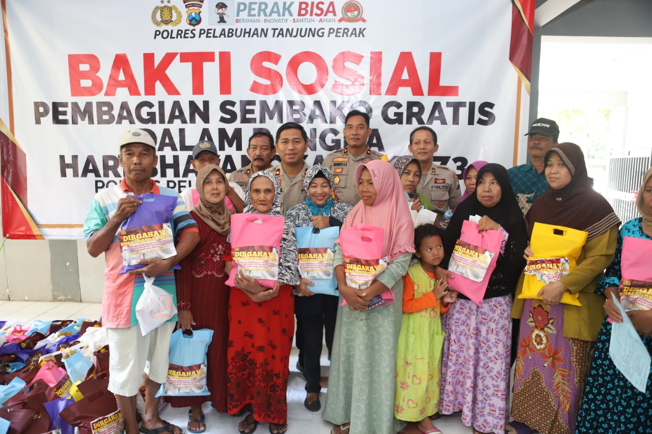 Seputarperak.com- Memperingati Hari Bhayangkara atau Hari Jadi Polri Ke-73, Polres Pelabuhan Tanjung Perak menggelar kegiatan bhakti sosial bagi-bagi sembako, Jumat pagi, 21 Juni 2019.