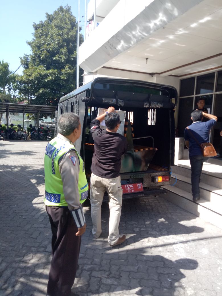 Seputarperak.com- Pengawalan dilakukan Polsek Asemrowo, Polres Pelabuhan Tanjung Perak terhadap kotak dan surat suara hasil rekapitulasi di tingkat Kecamatan Asemrowo, yang dikirim ke kantor KPU Kota Surabaya, pada Jumat, 29 Juni 2018.