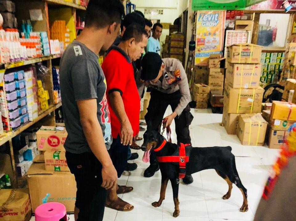 Seputarperak.com- Unit Satwa atau Unit K-9 Satsabhara Polres Pelabuhan Tanjung Perak, melaksanakan pelacakan umum di Toko Obat Tribata, Jalan Kembang Jepun, terkait kasus pembobolan dengan kerugian uang puluhan juta.