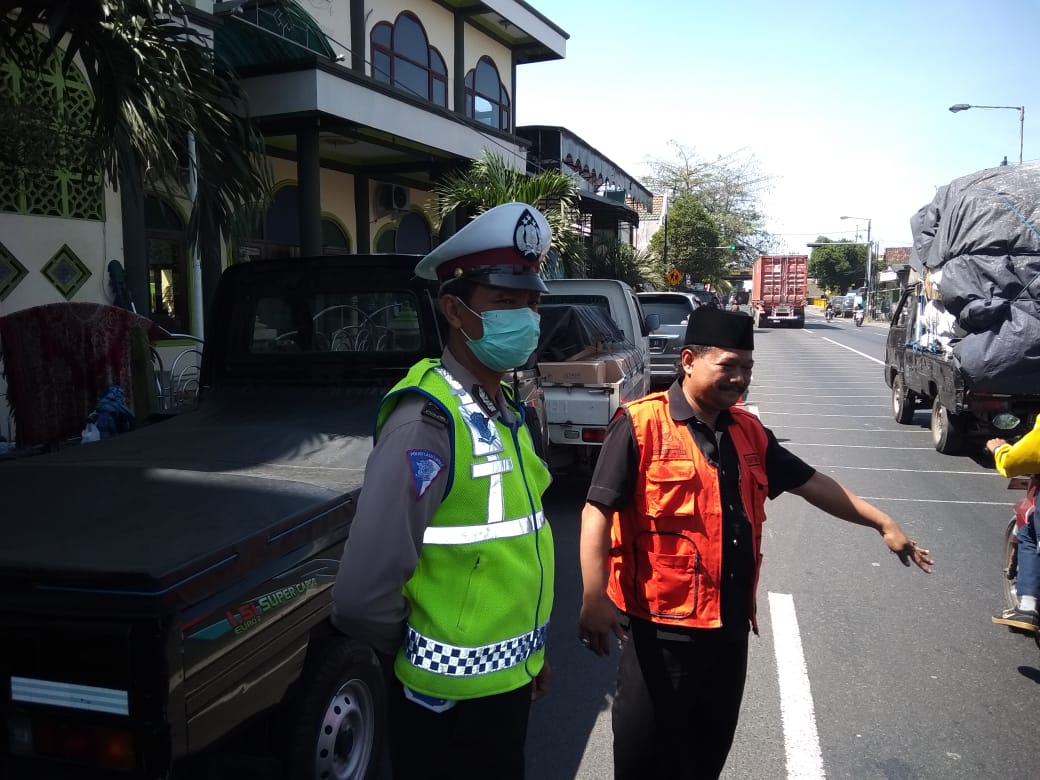 Dalam kesempatan itu, nampak personil Polsek Krembangan melakukan pengaturan lalu lintas dan menyeberangkan para jamaah sholat Jumat yang akan menuju masjid.