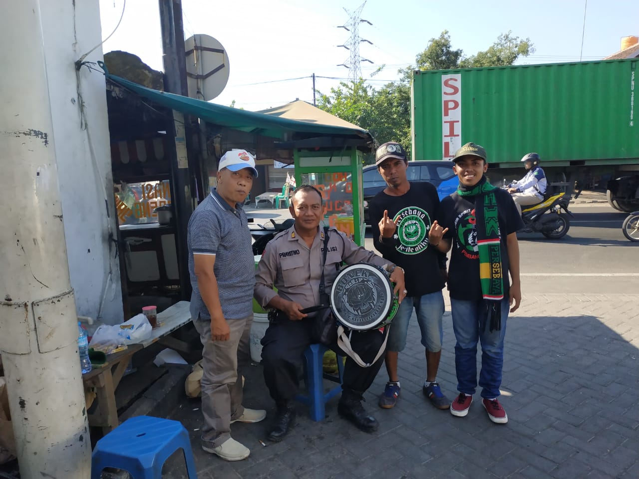 Sambil terus memantau situasi keamanan di sekitar lokasi, Wakapolsek saat itu juga memberikan arahan dan pesan-pesan positif kepada sejumalah supporter yang sedang berhenti untuk menunggu kedatangan kawan-kawannya.
