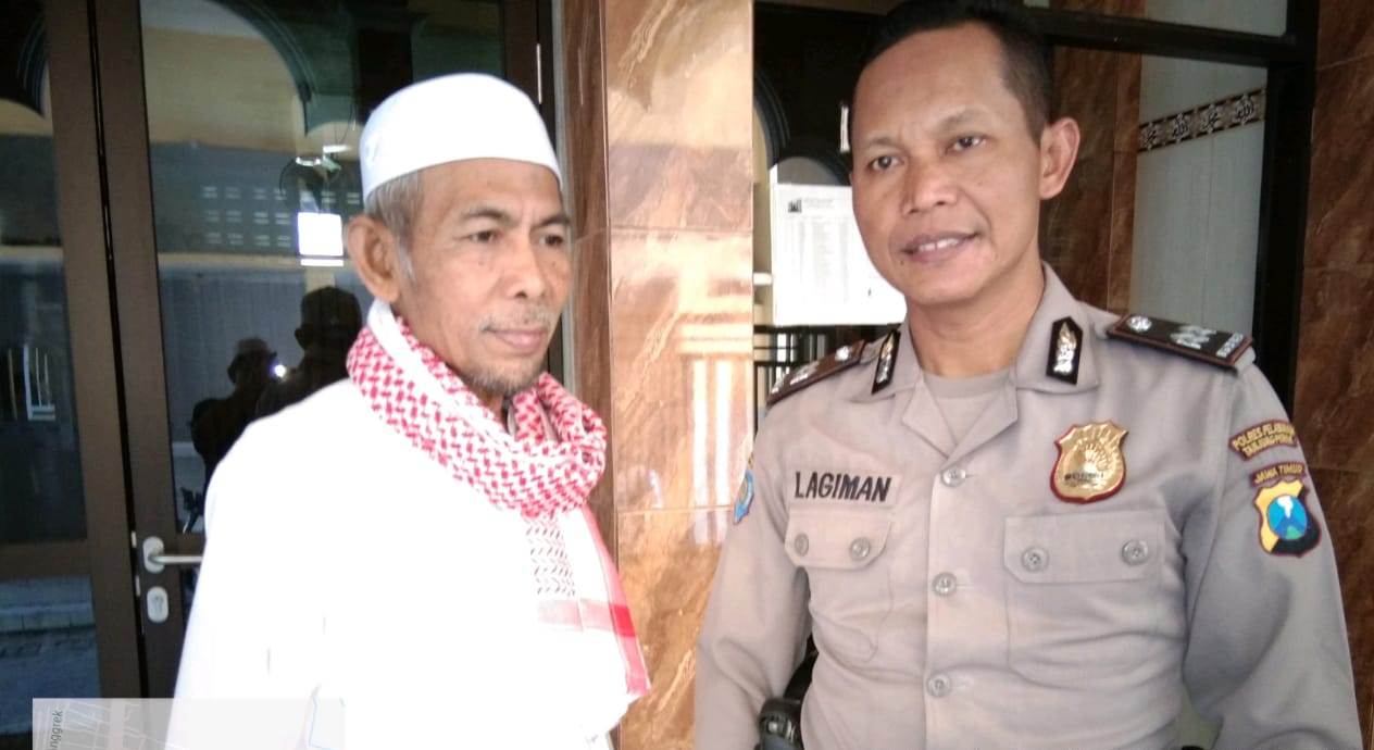 Seputarperak.com- Pesan jaga kerukunan antar umat beragama disampaikan Aiptu Lagiman, Babinkamtibmas Tanah Kali (Takal) Kedinding, Polsek Kenjeran, Polres Pelabuhan Tanjung Perak kepada Ustad Edi Swastono yang ditemui di Masjid An Nahar di Jalan Kedinding Tengah, Selasa siang, 2 Juli 2019.