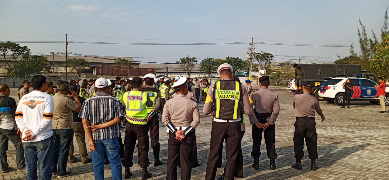 Saat itu usai pelaksanaan apel, para personil langsung menempati posisi masing-masing guna melakukan pengamanan aksi unjuk rasa yang dilakukan oleh pekerja PT Mentari Line di Jalan Kalianak.