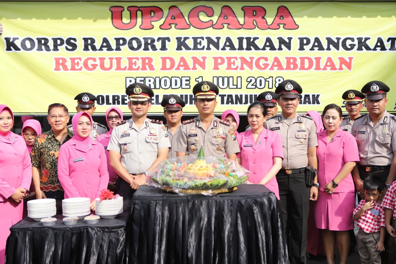Secara simbolis Kapolres menyematkan tanda kenaikan pangkat kepada salah seorang personil, dilanjutkan dengan ramah tamah antara seluruh personil yang hadir bersama ibu-ibu Bhayangkari Polres Pelabuhan Tanjung Perak.