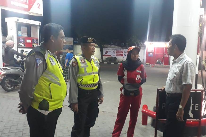 Seputarperak.com- Patroli dilakukan Polsek Semampir, Polres Pelabuhan Tanjung Perak, Minggu malam, 14 Juli 2019 di SPBU Jalan Sultan Iskandar Muda.