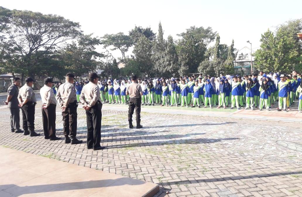 Seputarperak.com- Pelatihan baris berbaris (PBB) diberikan Polsek Semampir, Polres Pelabuhan Tanjung Perak kepada murid-murid SMPN 11, Jalan Sawah Pulo, Selasa pagi, 16 Juli 2019.