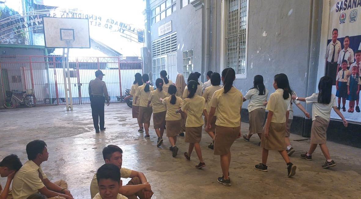 Seputarperak.com- Pelatihan baris berbaris (PBB) dilaksanakan siswa siswi SMA Sasana Bhakti, Jalan Jagalan, Kamis pagi, 18 Juli 2019.