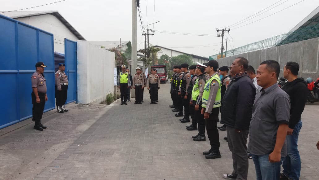 Seputarperak.com- Pengamanan aksi unjuk rasa kembali dilakukan Polres Pelabuhan Tanjung Perak, Jumat pagi, 19 Juli 2019 di PT Putra Guna Jaya Mulia, Jalan Kalianak 55.