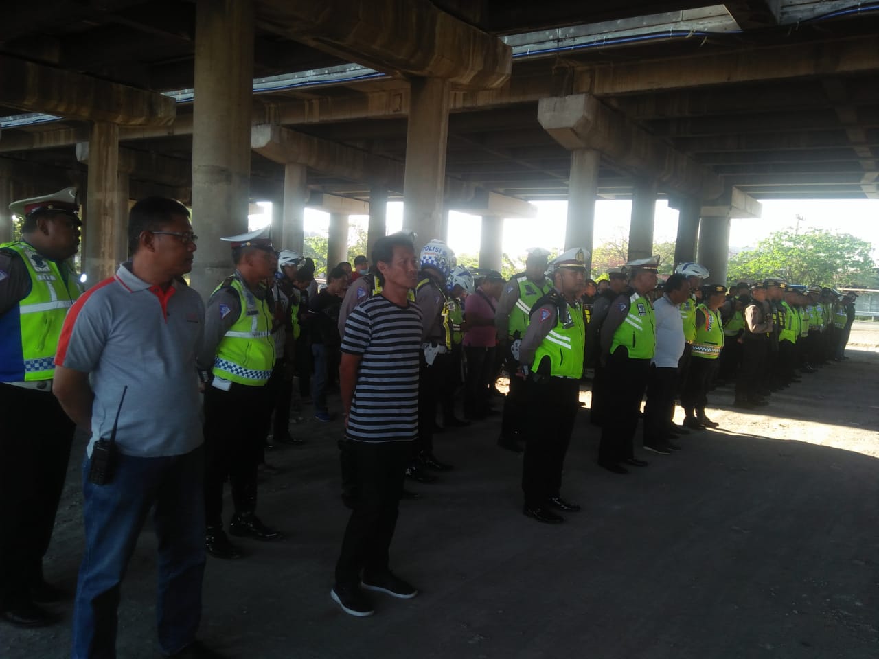 Seputarperak.com- Apel pengamanan supporter Bonek dilakukan personil gabungan Polres Pelabuhan Tanjung Perak dan Polsek-Polsek jajaran, Minggu sore, 21 Juli 2019 di turunan tol Tandes Timur.