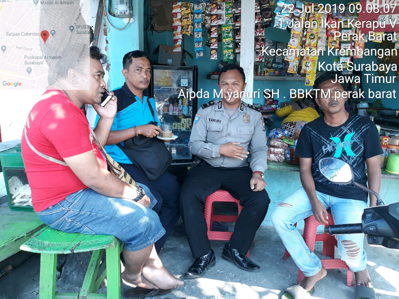 Seputarperak.com- Dalam rangka melaksanakan Operasi Bina Kusuma, penyuluhan narkoba disampaikan Aipda Yanuri, Babinkamtibmas Perak Barat, Polsek Krembangan, Polres Pelabuhan Tanjung Perak kepada warga RT 05 Jalan Ikan Kerapu V.