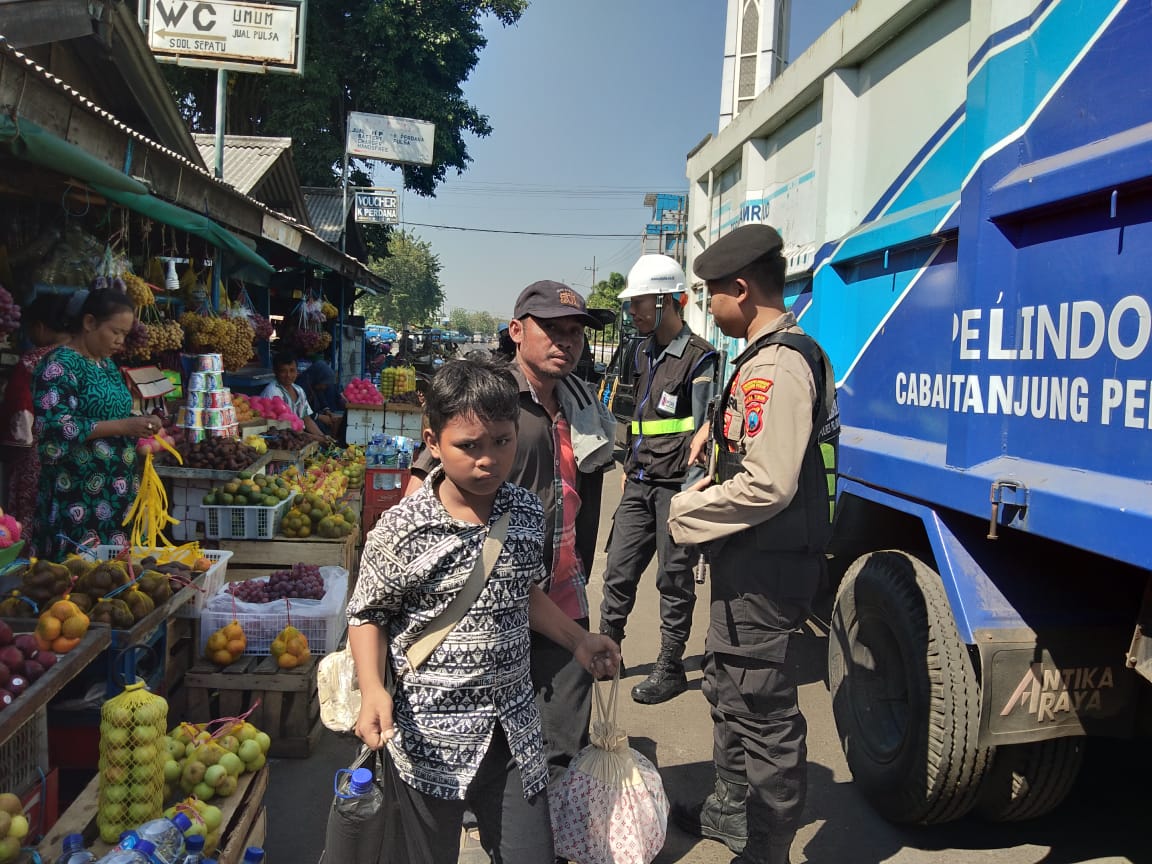 Seputarperak.com- Kegiatan patroli di Pasar Ujung dilakukan personil Satsabhara Polres Pelabuhan Tanjung Perak bersama sekuriti Pelindo, Senin siang, 22 Juli 2019.