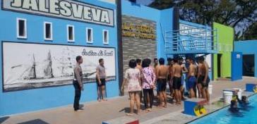 Selanjutnya para siswa yang semuanya beragama Islam diajak untuk melaksanakan kegiatan yasinan di Masjid Al Hidayah di lingkungan Mapolres dan terakhir mereka diajak latihan renang di kolam renang Jala Tirta Lantamal V.